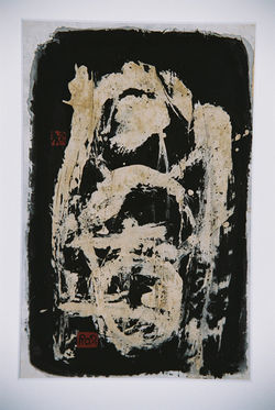 ![]() | ![]() 河童坐像(ちゃんちゃんこ) 17屎送尿著衣喫飯困来即臥愚人笑我智乃知焉(あしそうにょうじゃくえきっぱんこんきたればすなわちふすぐにんしょうがすなわちこれをしる) トイレに行って寒かったら着て腹がへったら飲んで食って、疲れたら寝るだけ。こんな私を愚人は笑うだろうが、智者はそれが本当だと知っている。『臨済録』より 制作 1996年 サイズ 41×175cm | ![]() 色即是空(不二山) |